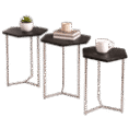 A stylish set of 3 hexagon nesting tables featuring sleek metal frames and elegant stone-finish tops—perfect for modern, space-saving living.